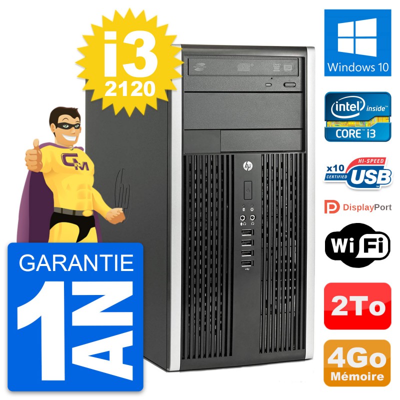 PC Tour HP Compaq Pro 6300 CMT (Micro Tour) - Intel Core i3-2120 3.3 Ghz (3 Mo) - 4 Go DDR3 - Disque Dur 3,5" 2 To - Graveur DVD - Clef Wifi USB - Windows 10 - Garantie 1 an.