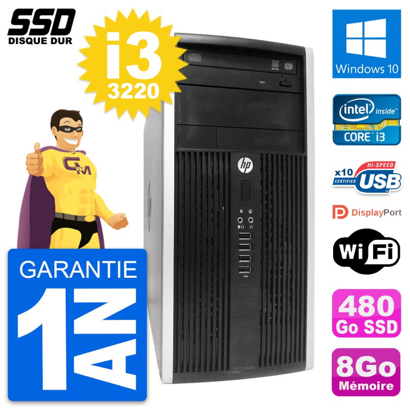 PC Tour HP Compaq Pro 6300 CMT (Micro Tour) - Intel Core i3-3220 3.3 Ghz (3 Mo) - 8 Go DDR3 - Disque Dur SSD 480 Go - Graveur DVD - Clef Wifi USB - Windows 10 - Garantie 1 an.