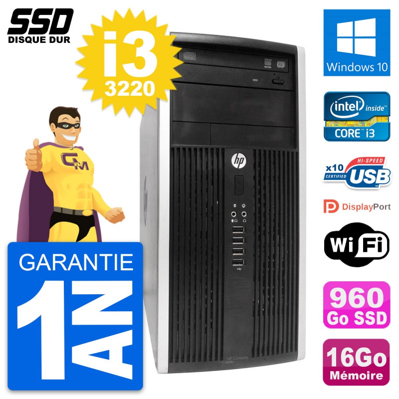 PC Tour HP Compaq Pro 6300 CMT (Micro Tour) - Intel Core i3-3220 3.3 Ghz (3 Mo) - 16 Go DDR3 - Disque Dur SSD 960 Go - Graveur DVD - Clef Wifi USB - Windows 10 - Garantie 1 an.