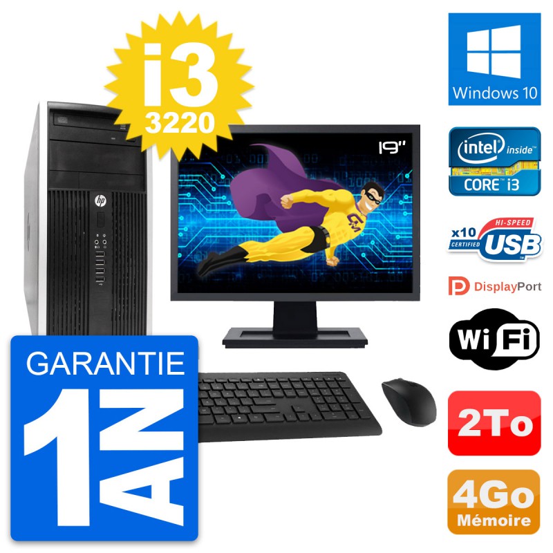 PC Tour HP Pro 6300 CMT Ecran 19" i3-3220 RAM 4Go Disque Dur 2To Windows 10 Wifi
