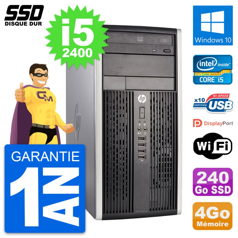 PC Tour HP Compaq Pro 6300 CMT (Micro Tour) - Intel Core i5-2400 3.1 Ghz (6 Mo) - 4 Go DDR3 - Disque Dur SSD 240 Go - Graveur DVD - Clef Wifi USB - Windows 10 - Garantie 1 an.