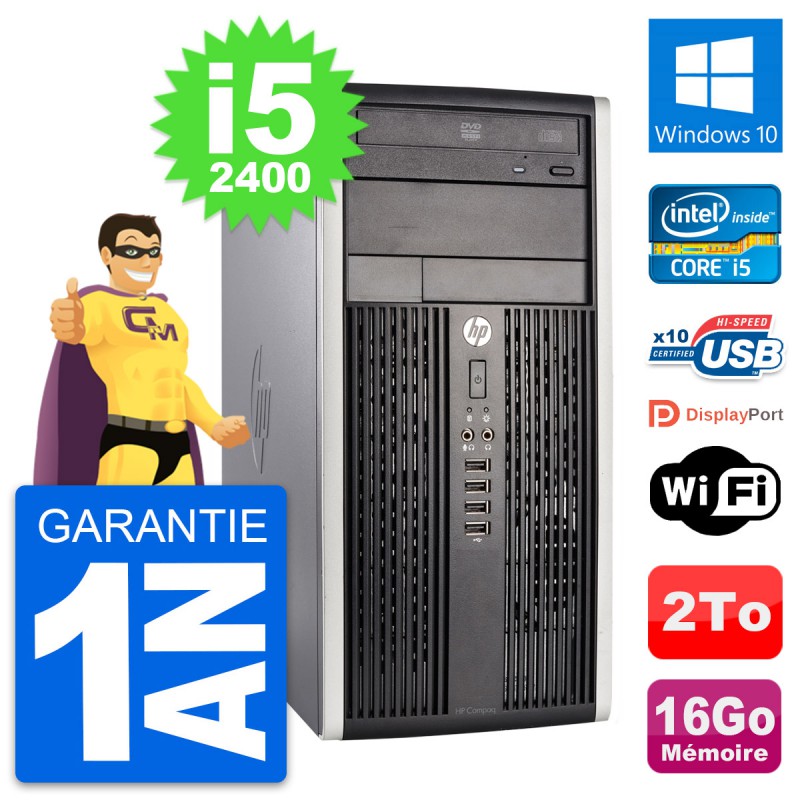 PC Tour HP Compaq Pro 6300 CMT Intel i5-2400 RAM 16Go Disque 2To Windows 10 Wifi