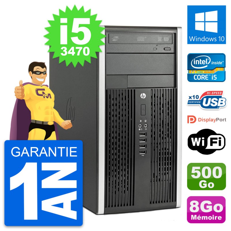 PC Tour HP Compaq Pro 6300 CMT (Micro Tour) - Intel Core i5-3470 3.2 Ghz (6 Mo) - 8 Go DDR3 - Disque Dur 3,5" 500 Go - Graveur DVD - Clef Wifi USB - Windows 10 - Garantie 1 an.