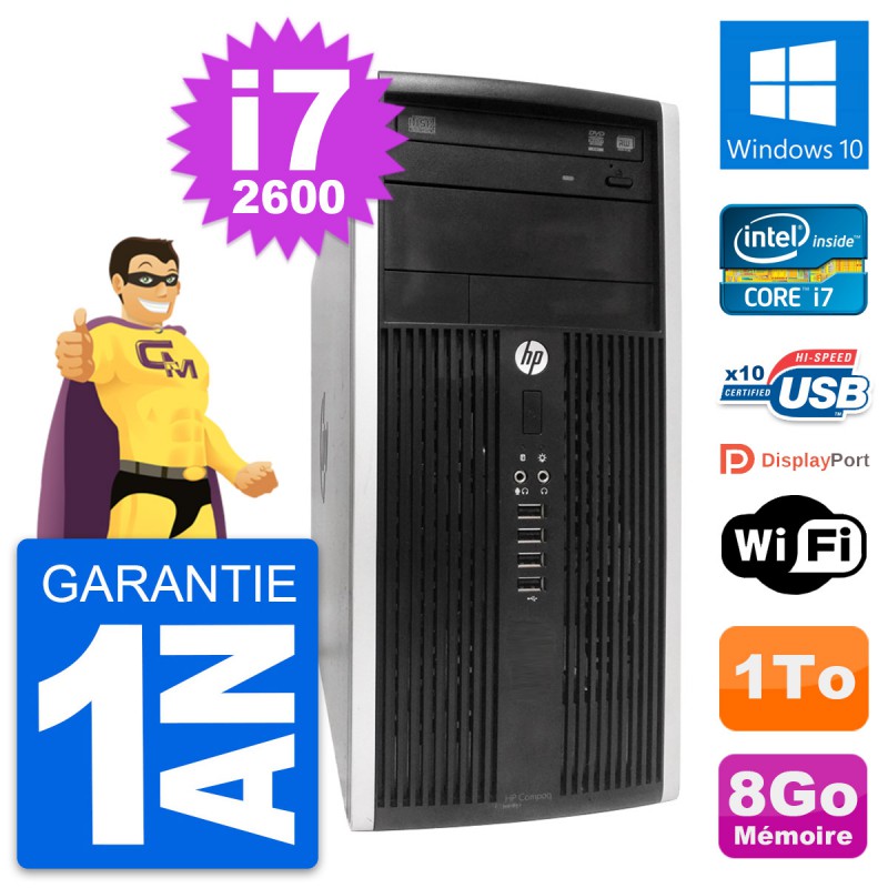 PC Tour HP Compaq Pro 6300 CMT (Micro Tour) - Intel Core i7-2600 3.4 Ghz (8 Mo) - 8 Go DDR3 - Disque Dur 3,5" 1 To - Graveur DVD - Clef Wifi USB - Windows 10 - Garantie 1 an.