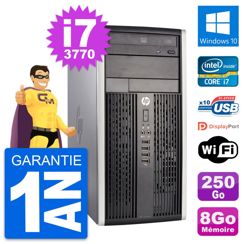 PC Tour HP Compaq Pro 6300 CMT (Micro Tour) - Intel Core i7-3770 3.4 Ghz (8 Mo) - 8 Go DDR3 - Disque Dur 3,5" 250 Go - Graveur DVD - Clef Wifi USB - Windows 10 - Garantie 1 an.