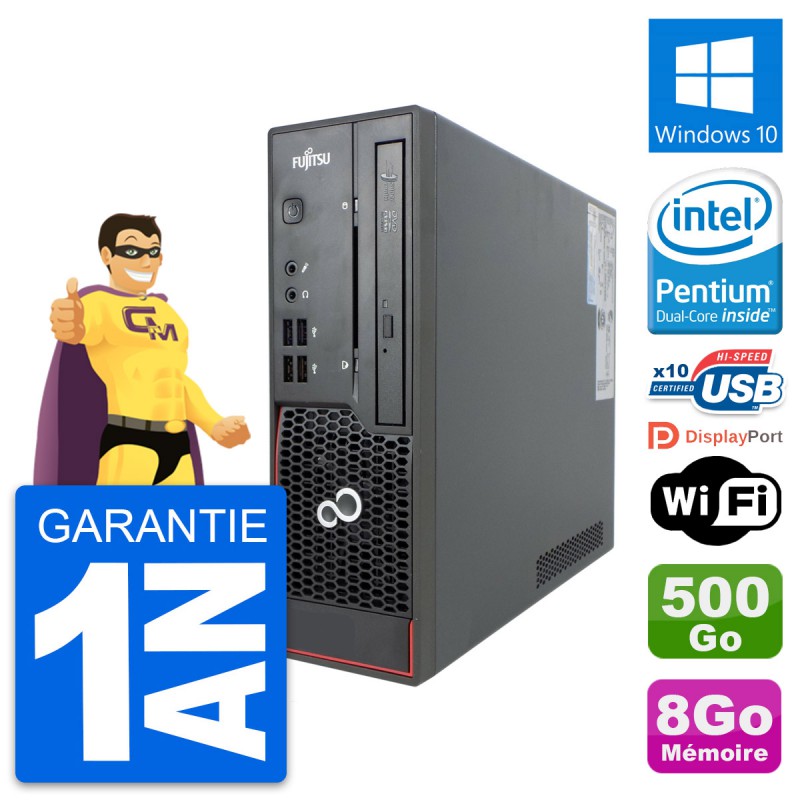 Mini PC Fujitsu C720 - Intel Pentium Dual-Core G3220 3.0 Ghz (3 Mo) - 8 Go DDR3 - Disque Dur 3,5" 500 Go - Graveur DVD - Clef Wifi USB - Windows 10 - Garantie 1 an.