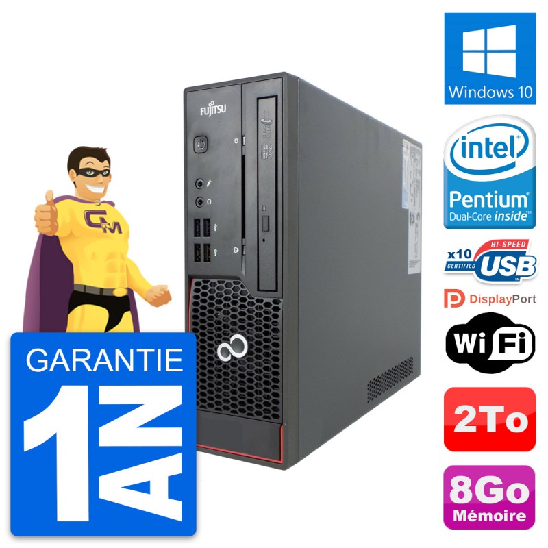 Mini PC Fujitsu C720 - Intel Pentium Dual-Core G3220 3.0 Ghz (3 Mo) - 8 Go DDR3 - Disque Dur 3,5" 2 To - Graveur DVD - Clef Wifi USB - Windows 10 - Garantie 1 an.
