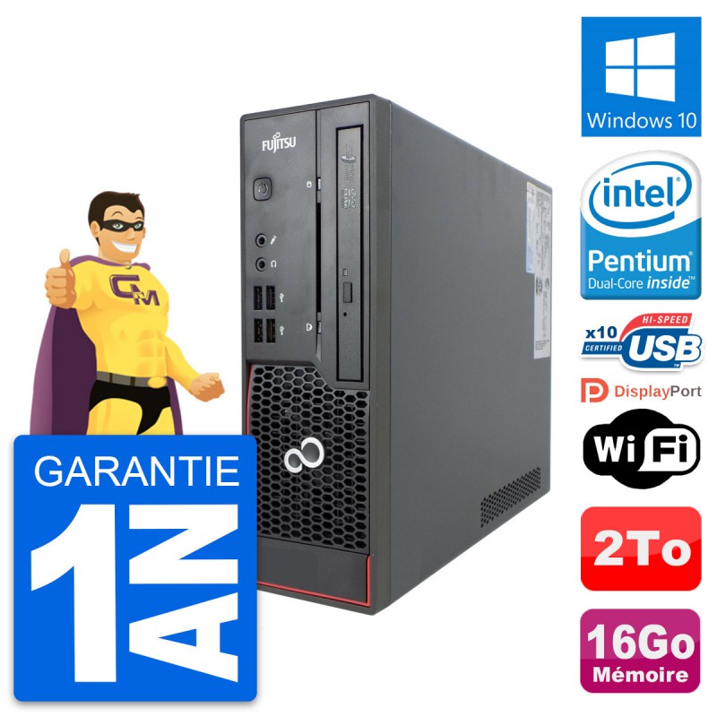 Mini PC Fujitsu C720 - Intel Pentium Dual-Core G3220 3.0 Ghz (3 Mo) - 16 Go DDR3 - Disque Dur 3,5" 2 To - Graveur DVD - Clef Wifi USB - Windows 10 - Garantie 1 an.