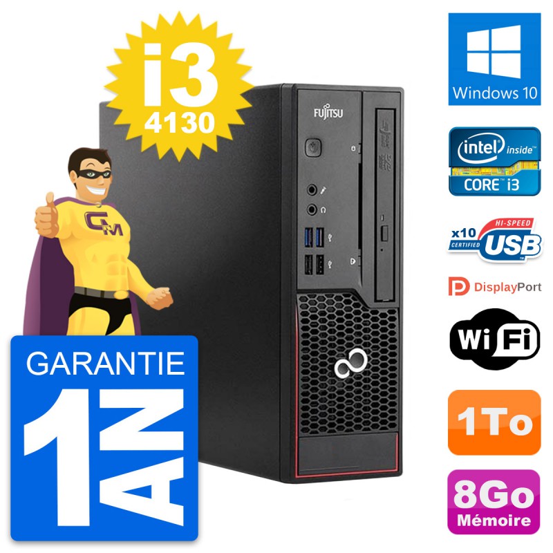 Mini PC Fujitsu C720 format SFF - Intel Core i3-4130 3.4 Ghz (3 Mo) - 8 Go DDR3 - Disque Dur 3,5" 1 To - Graveur DVD - Clef Wifi USB - Windows 10 - Garantie 1 an.