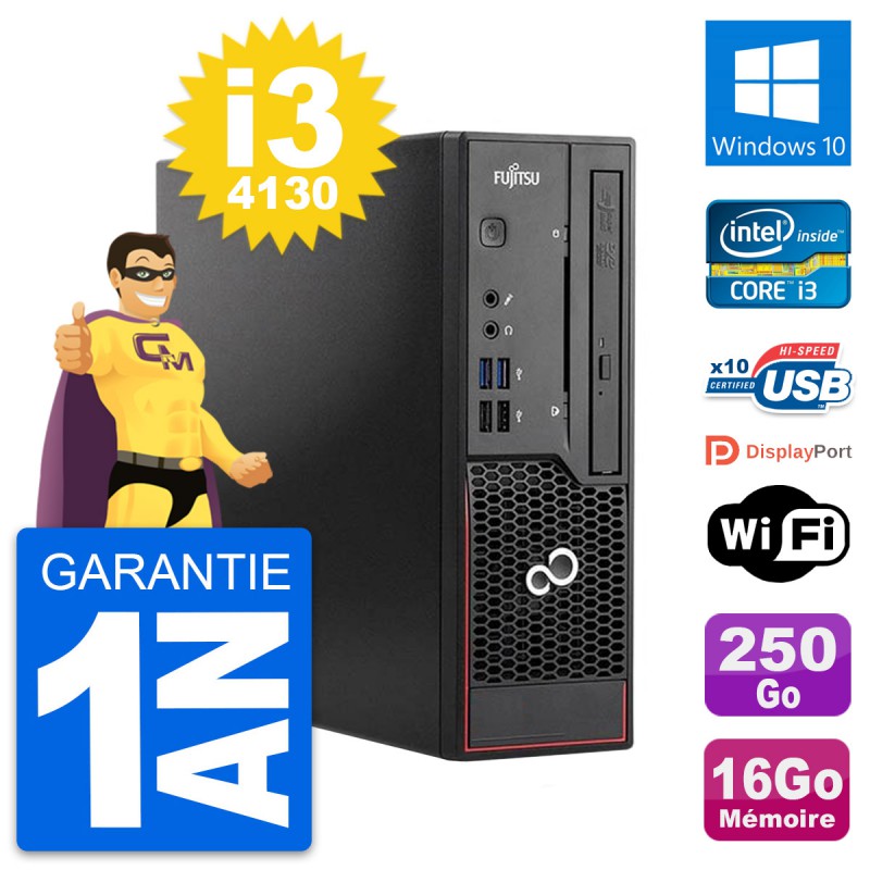 Mini PC Fujitsu C720 format SFF - Intel Core i3-4130 3.4 Ghz (3 Mo) - 16 Go DDR3 - Disque Dur 3,5" 250 Go - Graveur DVD - Clef Wifi USB - Windows 10 - Garantie 1 an.