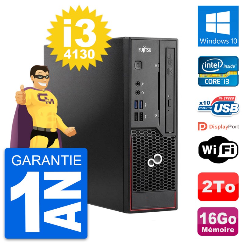 Mini PC Fujitsu C720 format SFF - Intel Core i3-4130 3.4 Ghz (3 Mo) - 16 Go DDR3 - Disque Dur 3,5" 2 To - Graveur DVD - Clef Wifi USB - Windows 10 - Garantie 1 an.