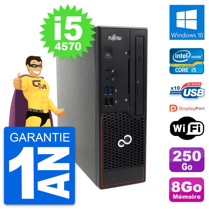 Mini PC Fujitsu C720 format SFF - Intel Core i5-4570 3.2 Ghz (6 Mo) - 8 Go DDR3 - Disque Dur 3,5" 250 Go - Graveur DVD - Clef Wifi USB - Windows 10 - Garantie 1 an.