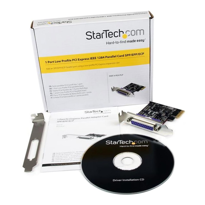 Carte Adaptateur - StarTech - P/N PEX1PLP / IE-X06-6110 - 1 Port Parallele DB-25F - PCI-Express - Low & High Profile (Equerre courte et équerre longue fournie) - Etat NEUF - Garantie 1 an.