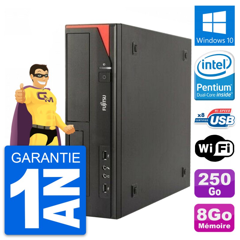PC Fujitsu Esprimo E520 DT - Intel Pentium Dual-Core G3220 3.0 Ghz (3 Mo) - 8 Go DDR3 - Disque Dur 3,5" 250 Go - Graveur DVD - Clef Wifi USB - Windows 10 - Garantie 1 an.