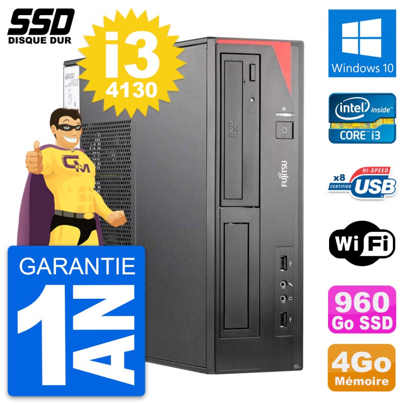 PC Fujitsu Esprimo E520 DT - Intel Core i3-4130 3.4 Ghz (3 Mo) - 4 Go DDR3 - Disque Dur SSD 960 Go - Graveur DVD - Clef Wifi USB - Windows 10 - Garantie 1 an.