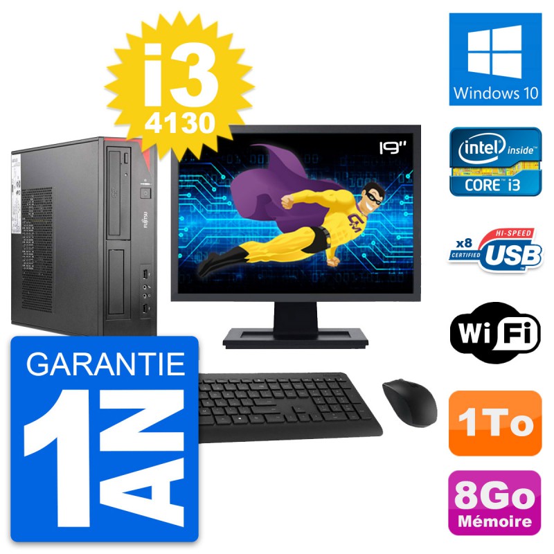 PC Fujitsu Esprimo E520 DT - Intel Core i3-4130 3.4 Ghz (3 Mo) - 8 Go DDR3 - Disque Dur 3,5" 1 To - Graveur DVD - Clef Wifi USB - Windows 10 - Livré avec Ecran 19" + clavier + souris (Marques et modèles variables) - Garantie 1 an.