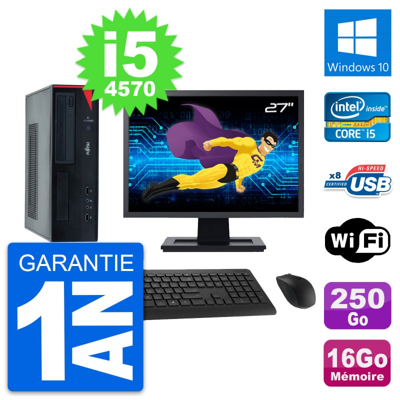 PC Fujitsu Esprimo E520 DT - Intel Core i5-4570 3.2 Ghz (6 Mo) - 16 Go DDR3 - Disque Dur 3,5" 250 Go - Graveur DVD - Clef Wifi USB - Windows 10 - Livré avec Ecran 27" + clavier + souris (Marques et modèles variables) - Garantie 1 an.