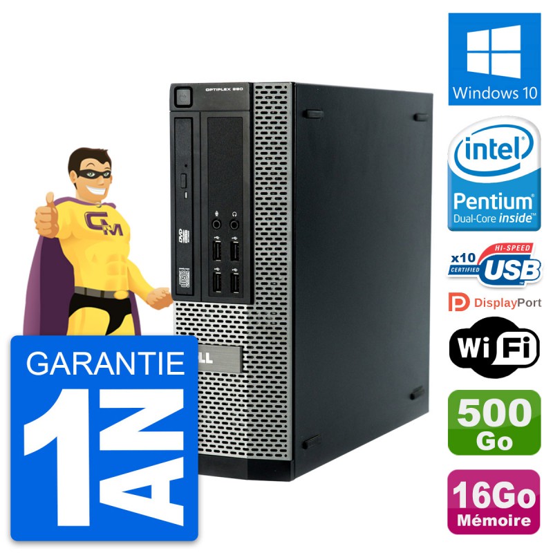 PC Dell OptiPlex 990 SFF - Intel Pentium Dual-Core G840 2.8 Ghz (3 Mo) - 16 Go DDR3 - Disque Dur 3,5" 500 Go - Graveur DVD - Clef Wifi USB - Windows 10 - Garantie 1 an.