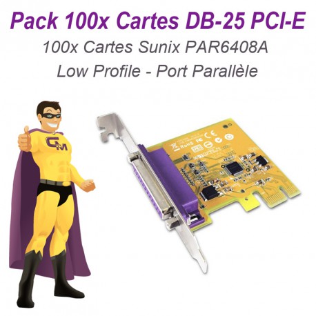 Lot 100 Cartes SUNIX Port Parallèle IEEE1284 LPT DB-25 PCIe Low Profile PAR6408A