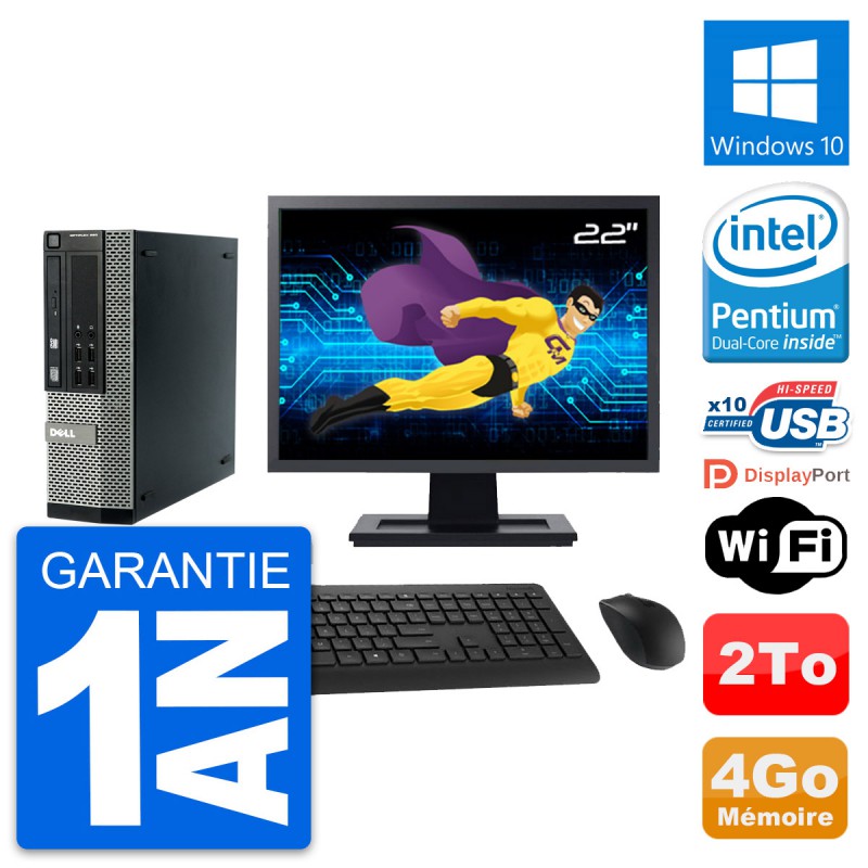 PC Dell 990 SFF - Intel Pentium Dual-Core G840 2.8 Ghz (3 Mo) - 4 Go DDR3 - Disque Dur 3,5" 2 To - Graveur DVD - Clef Wifi USB - Windows 10 - Livré avec Ecran 22" + clavier + souris (Marques et modèles variables) - Garantie 1 an.