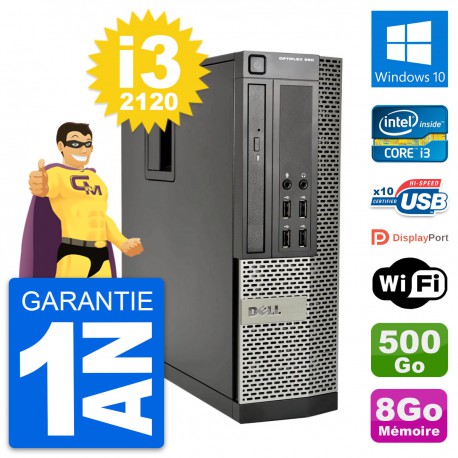 PC Dell OptiPlex 990 SFF - Intel Core i3-2120 3.3 Ghz (3 Mo) - 8 Go DDR3 - Disque Dur 3,5" 500 Go - Graveur DVD - Clef Wifi USB - Windows 10 - Garantie 1 an.
