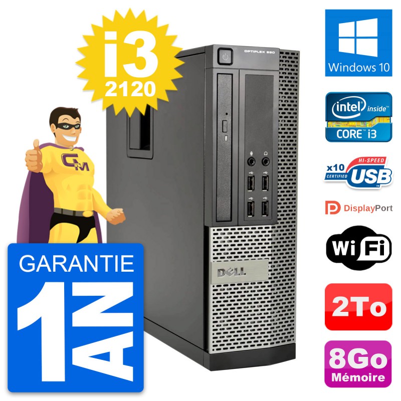 PC Dell OptiPlex 990 SFF - Intel Core i3-2120 3.3 Ghz (3 Mo) - 8 Go DDR3 - Disque Dur 3,5" 2 To - Graveur DVD - Clef Wifi USB - Windows 10 - Garantie 1 an.