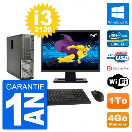 PC Dell 990 SFF - Intel Core i3-2120 3.3 Ghz (3 Mo) - 4 Go DDR3 - Disque Dur 3,5" 1 To - Graveur DVD - Clef Wifi USB - Windows 10 - Livré avec Ecran 19" + clavier + souris (Marques et modèles variables) - Garantie 1 an.