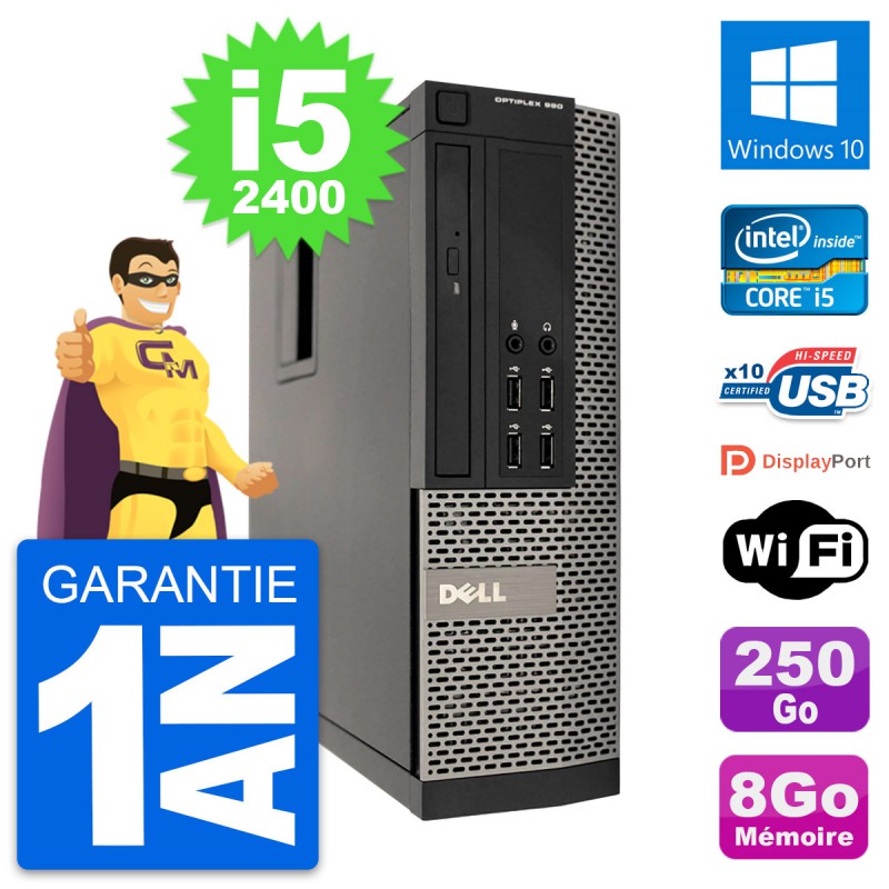 PC Dell OptiPlex 990 SFF - Intel Core i5-2400 3.1 Ghz (6 Mo) - 8 Go DDR3 - Disque Dur 3,5" 250 Go - Graveur DVD - Clef Wifi USB - Windows 10 - Garantie 1 an.