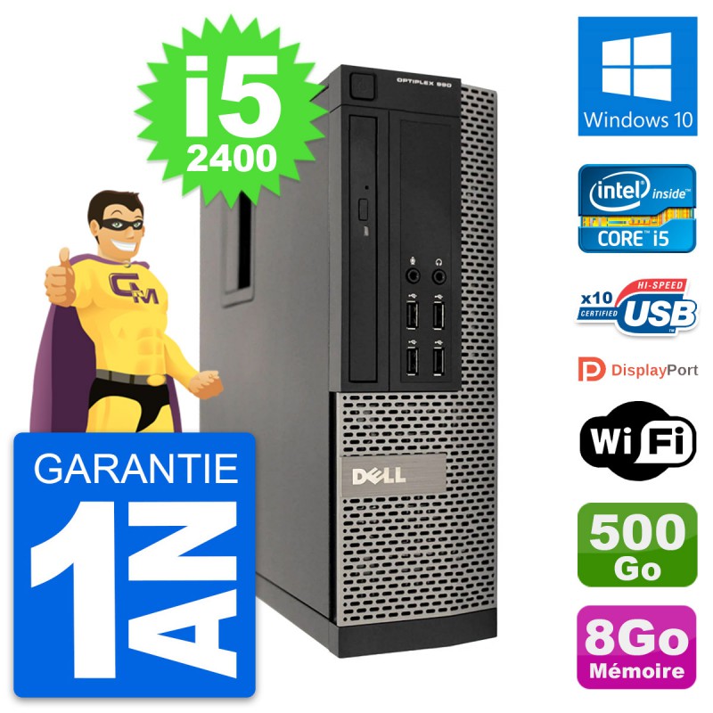 PC Dell OptiPlex 990 SFF Intel i5-2400 RAM 8Go Disque Dur 500Go Windows 10 Wifi
