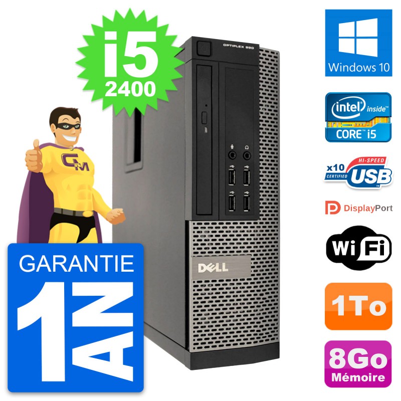 PC Dell OptiPlex 990 SFF - Intel Core i5-2400 3.1 Ghz (6 Mo) - 8 Go DDR3 - Disque Dur 3,5" 1 To - Graveur DVD - Clef Wifi USB - Windows 10 - Garantie 1 an.