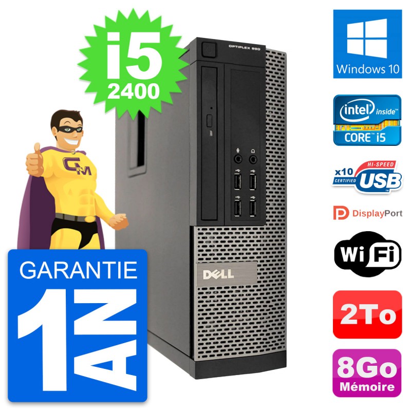 PC Dell OptiPlex 990 SFF Intel i5-2400 RAM 8Go Disque Dur 2To Windows 10 Wifi
