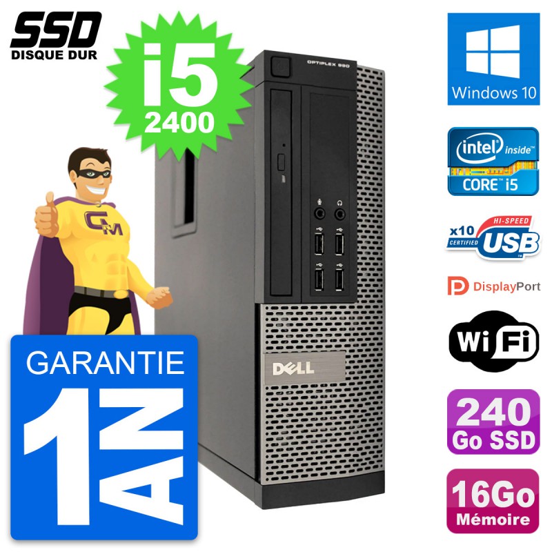 PC Dell OptiPlex 990 SFF - Intel Core i5-2400 3.1 Ghz (6 Mo) - 16 Go DDR3 - Disque Dur SSD 240 Go - Graveur DVD - Clef Wifi USB - Windows 10 - Garantie 1 an.