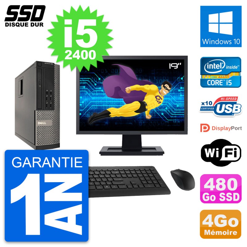 PC Dell 990 SFF - Intel Core i5-2400 3.1 Ghz (6 Mo) - 4 Go DDR3 - Disque Dur SSD 480 Go - Graveur DVD - Clef Wifi USB - Windows 10 - Livré avec Ecran 19" + clavier + souris (Marques et modèles variables) - Garantie 1 an.