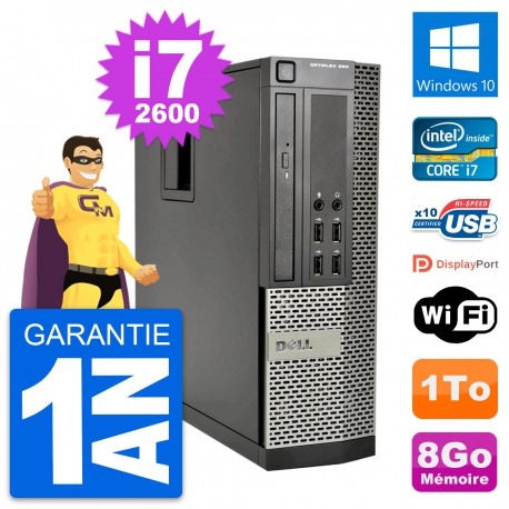 PC Dell OptiPlex 990 SFF - Intel Core i7-2600 3.4 Ghz (8 Mo) - 8 Go DDR3 - Disque Dur 3,5" 1 To - Graveur DVD - Clef Wifi USB - Windows 10 - Garantie 1 an.
