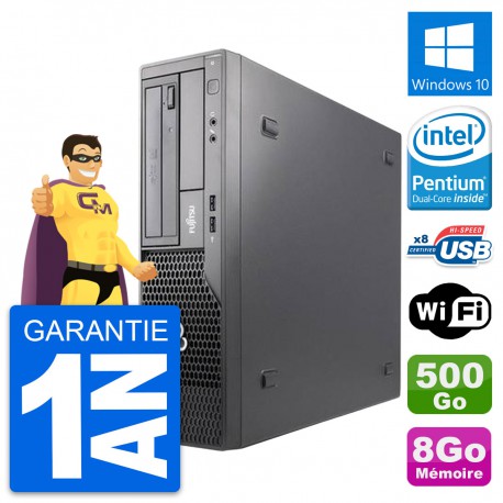 PC Fujitsu Esprimo E500 DT - Intel Pentium Dual-Core G630 2.7 Ghz (3 Mo) - 8 Go DDR3 - Disque Dur 3,5" 500 Go - Graveur DVD - Clef Wifi USB - Windows 10 - Garantie 1 an.