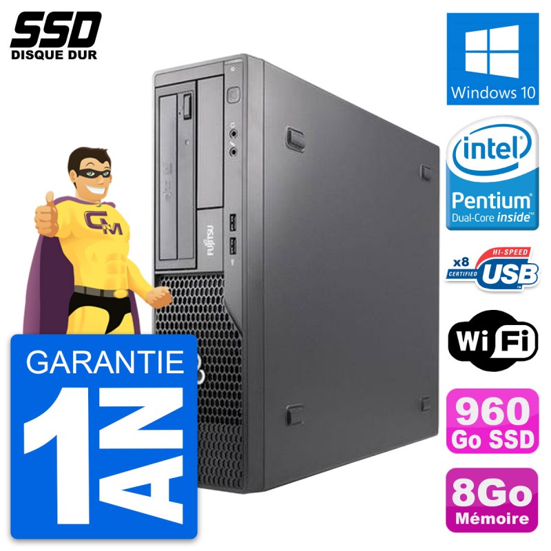 PC Fujitsu Esprimo E500 DT - Intel Pentium Dual-Core G630 2.7 Ghz (3 Mo) - 8 Go DDR3 - Disque Dur SSD 960 Go - Graveur DVD - Clef Wifi USB - Windows 10 - Garantie 1 an.