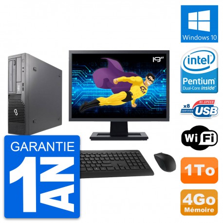 PC Fujitsu E500 DT - Intel Pentium Dual-Core G630 2.7 Ghz (3 Mo) - 4 Go DDR3 - Disque Dur 3,5" 1 To - Graveur DVD - Clef Wifi USB - Windows 10 - Livré avec Ecran 19" + clavier + souris (Marques et modèles variables) - Garantie 1 an.