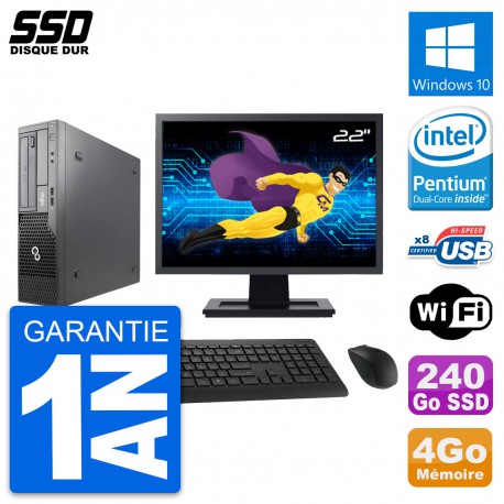 PC Fujitsu E500 DT - Intel Pentium Dual-Core G630 2.7 Ghz (3 Mo) - 4 Go DDR3 - Disque Dur SSD 240 Go - Graveur DVD - Clef Wifi USB - Windows 10 - Livré avec Ecran 22" + clavier + souris (Marques et modèles variables) - Garantie 1 an.