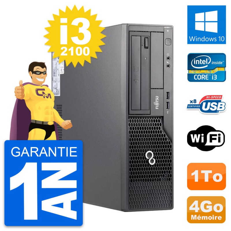 PC Fujitsu Esprimo E500 DT - Intel Core i3-2100 3.1 Ghz (3 Mo) - 4 Go DDR3 - Disque Dur 3,5" 1 To - Graveur DVD - Clef Wifi USB - Windows 10 - Garantie 1 an.