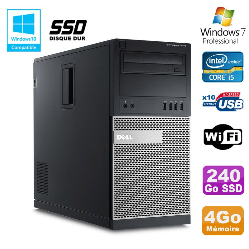 PC Tour Dell Optiplex 7010 Core I5-3470 3.2Ghz 4Go 240Go SSD DVD WIFI Win 7