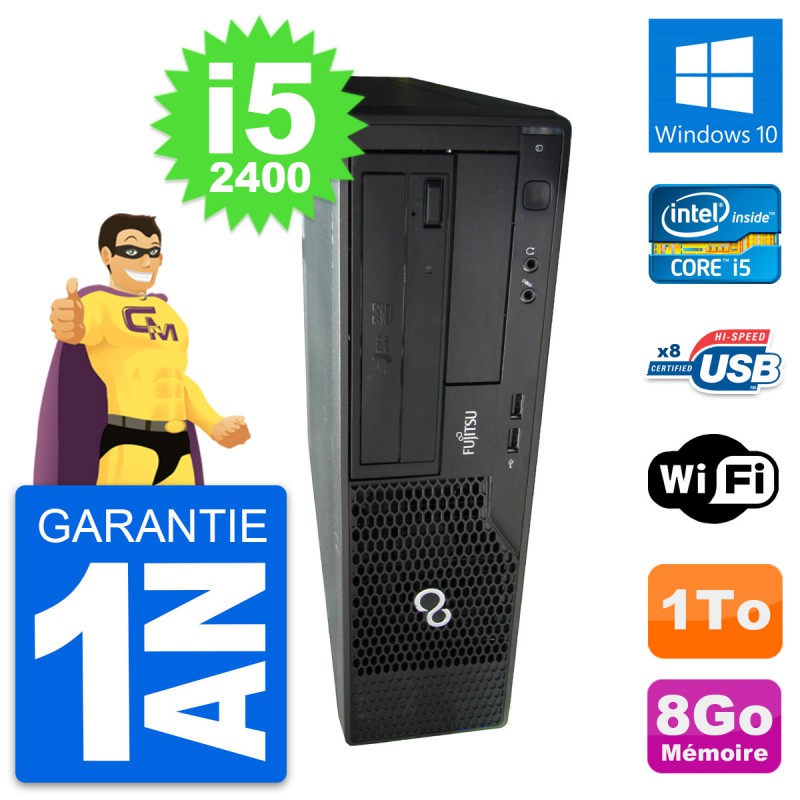 PC Fujitsu Esprimo E500 DT - Intel Core i5-2400 3.1 Ghz (6 Mo) - 8 Go DDR3 - Disque Dur 3,5" 1 To - Graveur DVD - Clef Wifi USB - Windows 10 - Garantie 1 an.