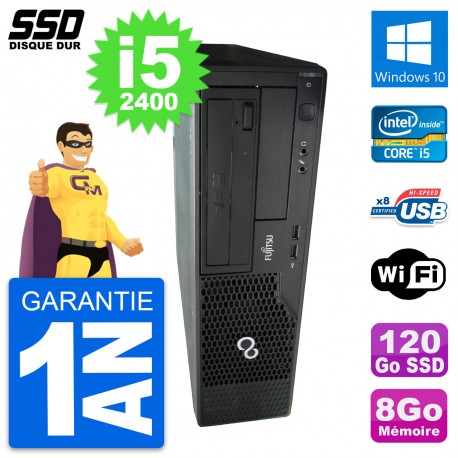 PC Fujitsu Esprimo E500 DT - Intel Core i5-2400 3.1 Ghz (6 Mo) - 8 Go DDR3 - Disque Dur SSD 120 Go - Graveur DVD - Clef Wifi USB - Windows 10 - Garantie 1 an.