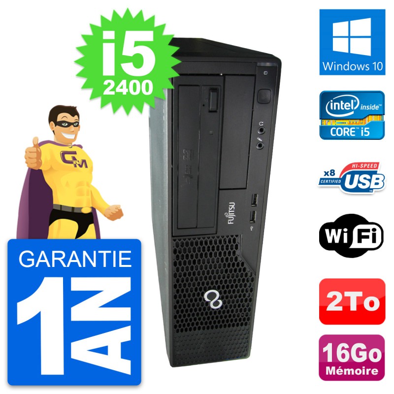 PC Fujitsu Esprimo E500 DT - Intel Core i5-2400 3.1 Ghz (6 Mo) - 16 Go DDR3 - Disque Dur 3,5" 2 To - Graveur DVD - Clef Wifi USB - Windows 10 - Garantie 1 an.