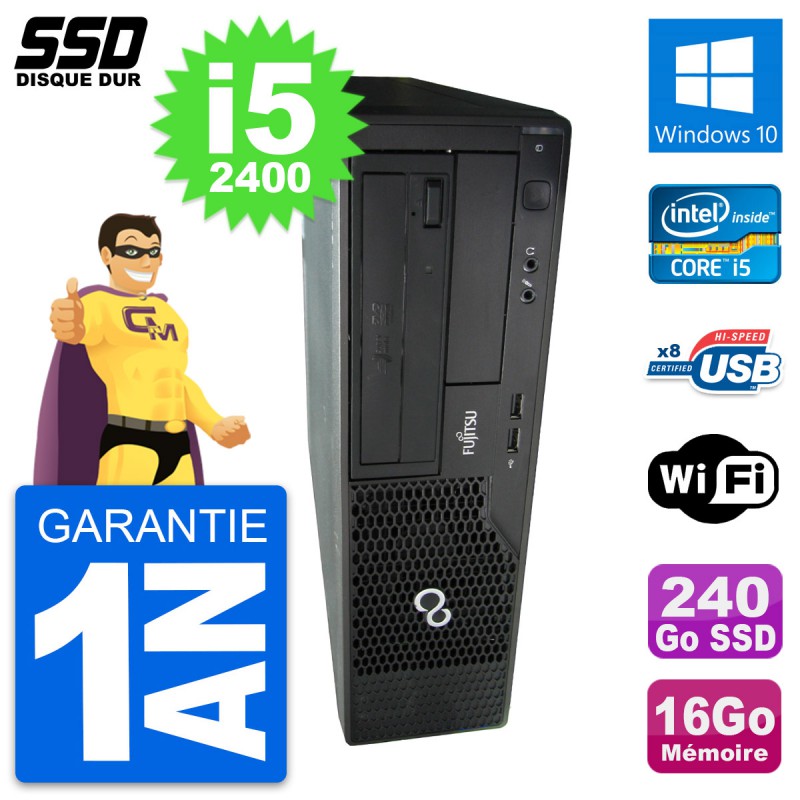 PC Fujitsu Esprimo E500 DT - Intel Core i5-2400 3.1 Ghz (6 Mo) - 16 Go DDR3 - Disque Dur SSD 240 Go - Graveur DVD - Clef Wifi USB - Windows 10 - Garantie 1 an.