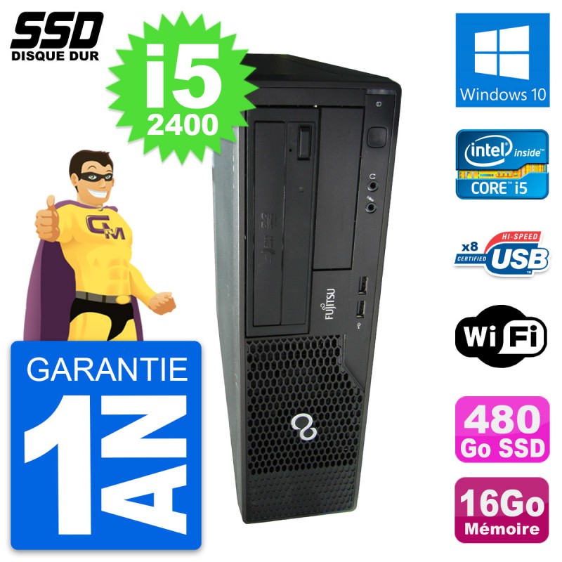 PC Fujitsu Esprimo E500 DT - Intel Core i5-2400 3.1 Ghz (6 Mo) - 16 Go DDR3 - Disque Dur SSD 480 Go - Graveur DVD - Clef Wifi USB - Windows 10 - Garantie 1 an.