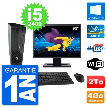 PC Fujitsu E500 DT Ecran 19" Intel i5-2400 RAM 4Go Disque 2To Windows 10 Wifi