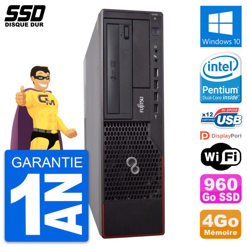 PC Fujitsu Esprimo E700 DT - Intel Pentium Dual-Core G630 2.7 Ghz (3 Mo) - 4 Go DDR3 - Disque Dur SSD 960 Go - Graveur DVD - Clef Wifi USB - Windows 10 - Garantie 1 an.