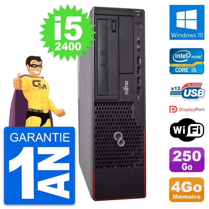 PC Fujitsu Esprimo E700 DT - Intel Core i5-2400 3.1 Ghz (6 Mo) - 4 Go DDR3 - Disque Dur 3,5" 250 Go - Graveur DVD - Clef Wifi USB - Windows 10 - Garantie 1 an.