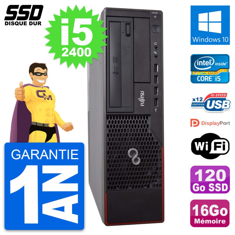 PC Fujitsu Esprimo E700 DT - Intel Core i5-2400 3.1 Ghz (6 Mo) - 16 Go DDR3 - Disque Dur SSD 120 Go - Graveur DVD - Clef Wifi USB - Windows 10 - Garantie 1 an.