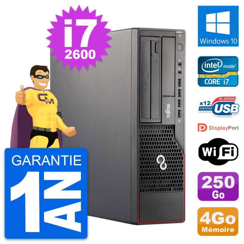 PC Fujitsu Esprimo E700 DT - Intel Core i7-2600 3.4 Ghz (8 Mo) - 4 Go DDR3 - Disque Dur 3,5" 250 Go - Graveur DVD - Clef Wifi USB - Windows 10 - Garantie 1 an.